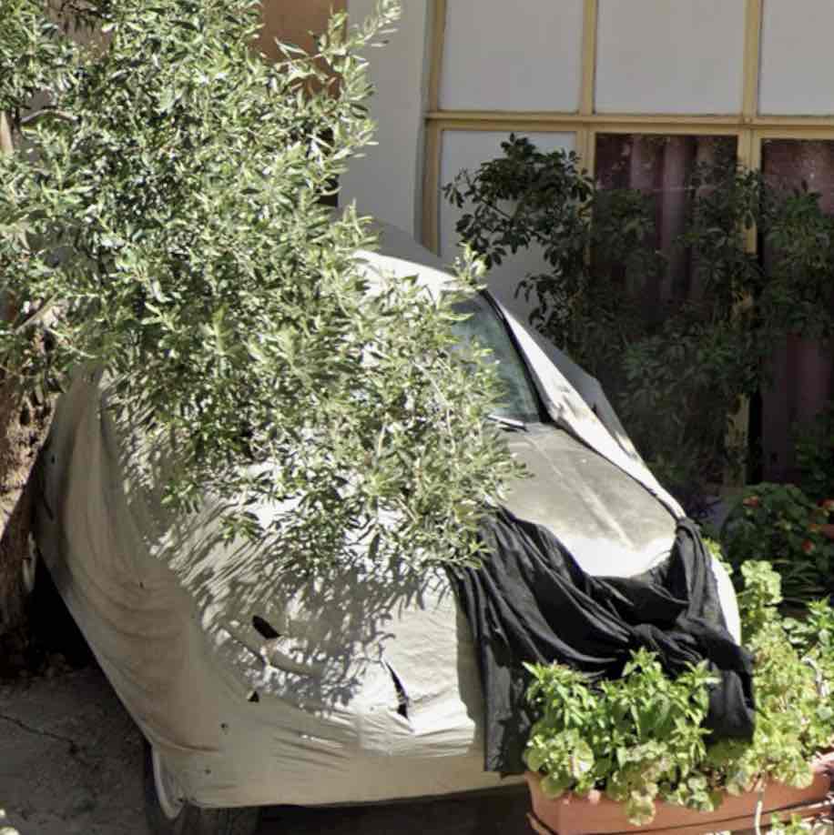 Το γκρι τζιπ είναι σκεπασμένο κ παρατημένο πολλά χρόνια στο πεζοδρόμιο κ αποτελεί εστία μόλυνσης